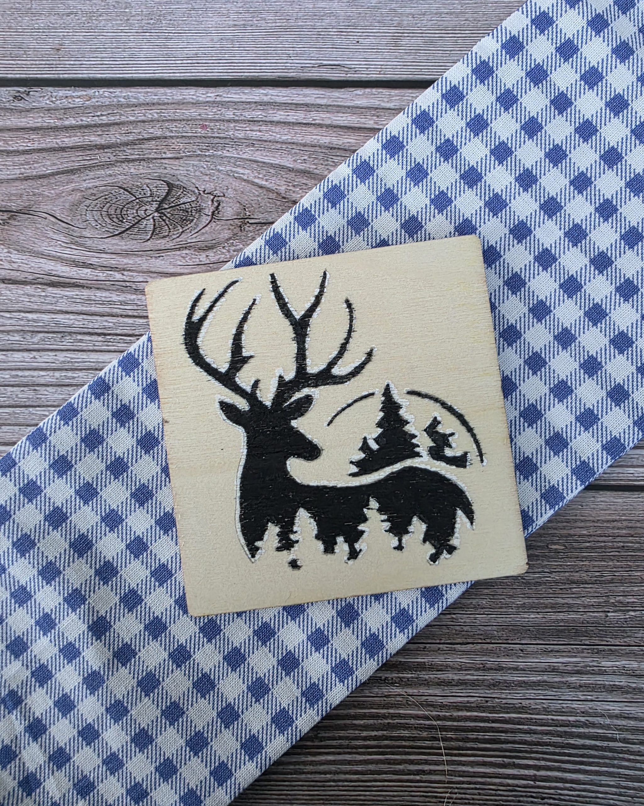 The Artisan Quilt Tile Set | Woodland Stag is a miniature collection of hand-painted wooden tiles inspired by forest imagery and folk-style silhouettes. Drawing on the make-do-and-mend spirit of the 1930s, this set reflects a time when beauty was shaped from scraps and meaning was carried in everyday objects.