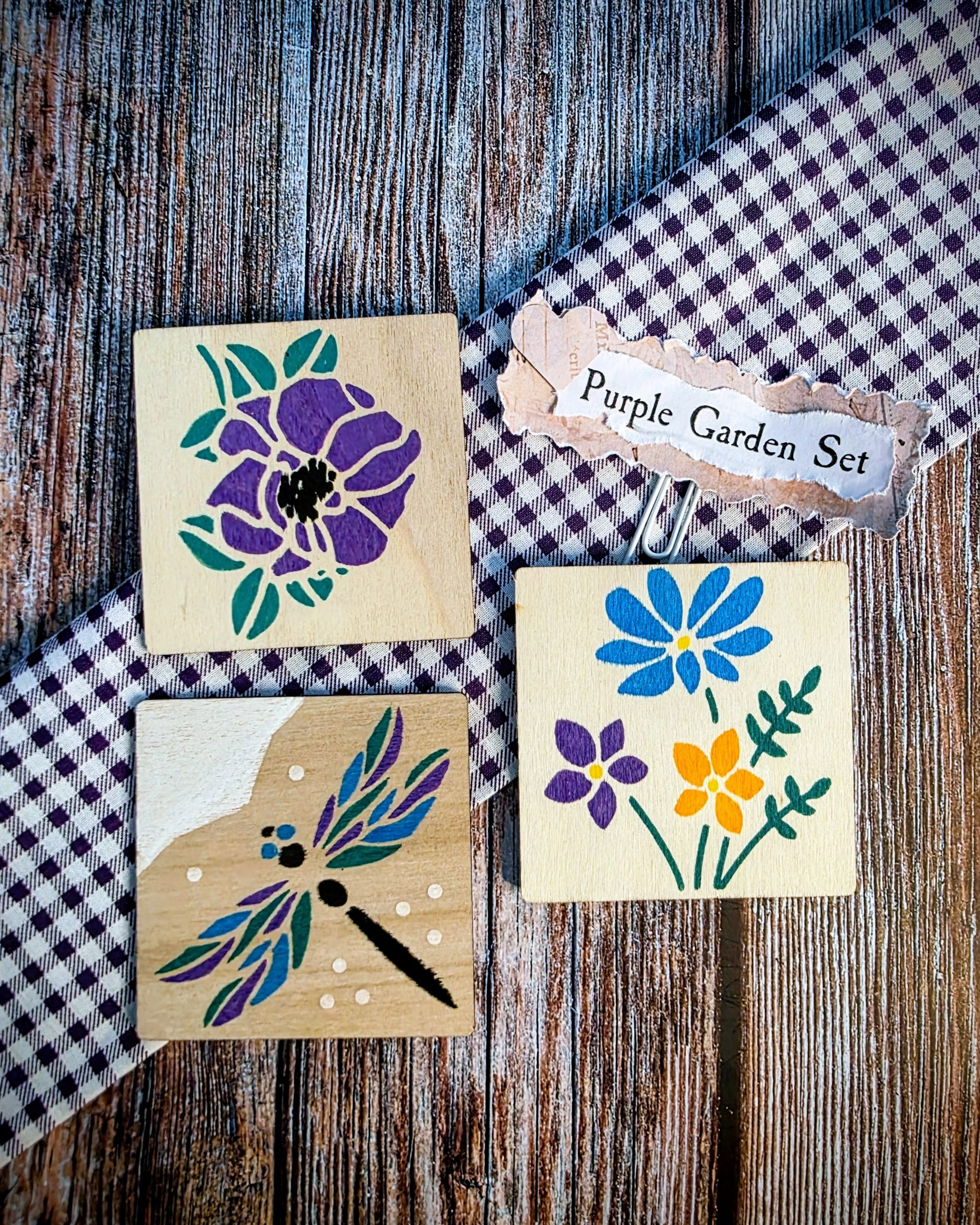 The Purple Garden Set evokes a flowering garden in full bloom, blending deep purples and greens for a fresh yet timeless feel. Display them as mini art tiles, tuck them into gifts, or let them brighten your shelf with handmade warmth.